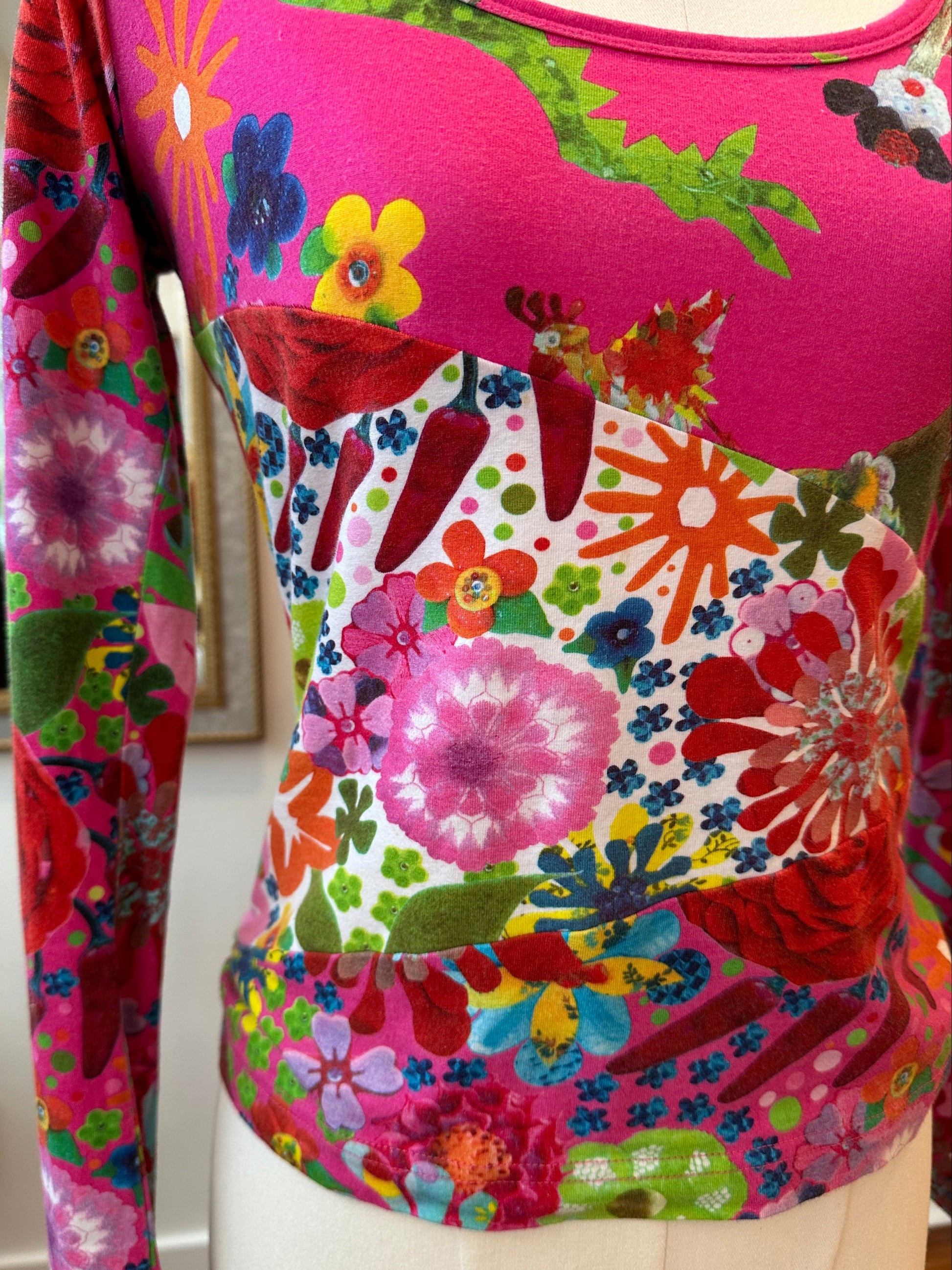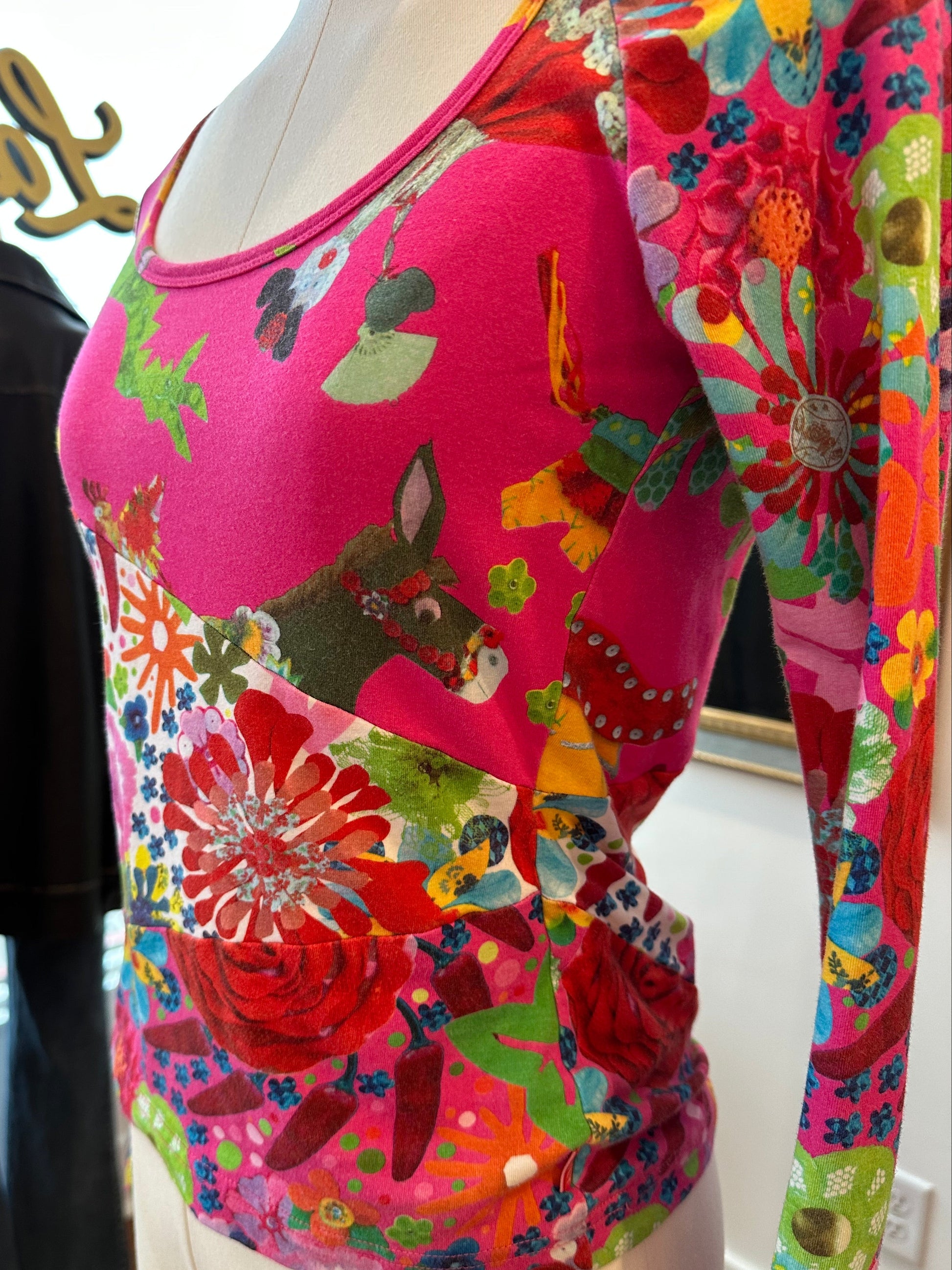 Novelty late 90s/ early Y2K hot pink multi pop-art long-sleeve tee.