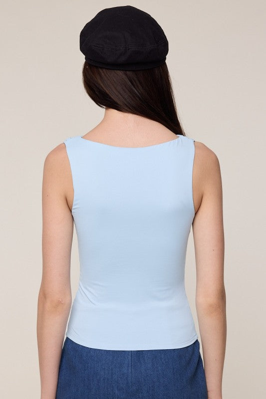 Basic tank with boat-neck & side ruching.