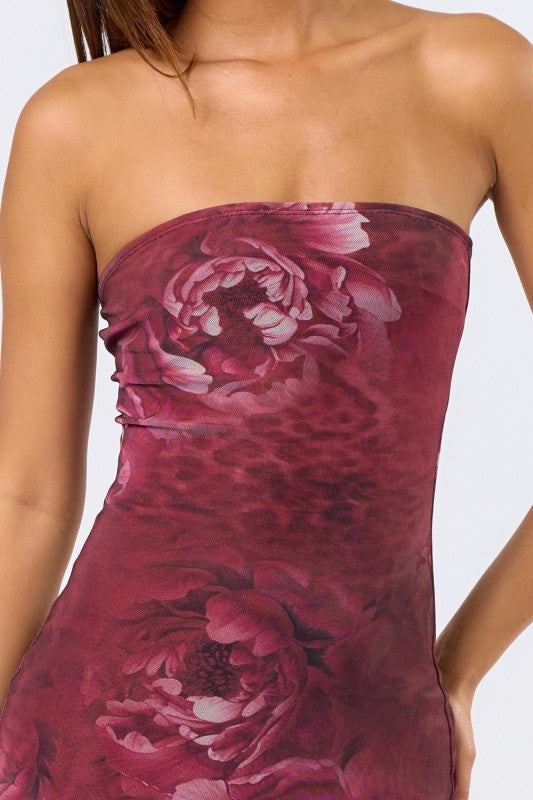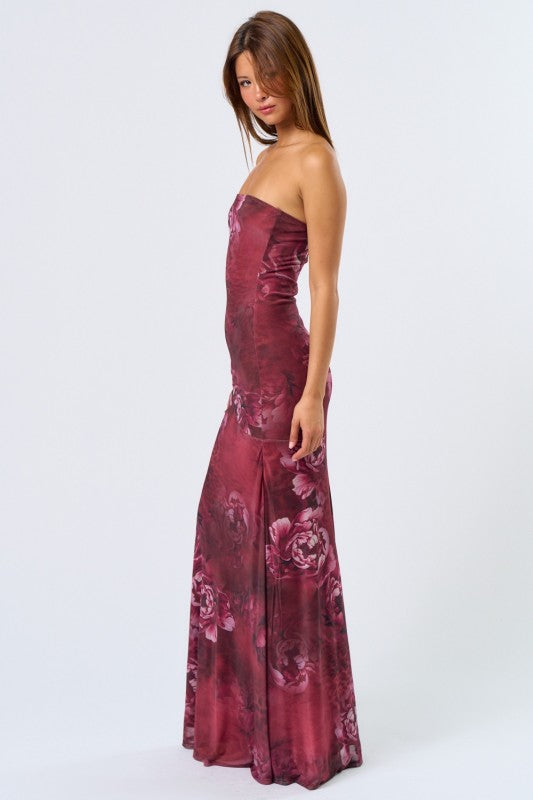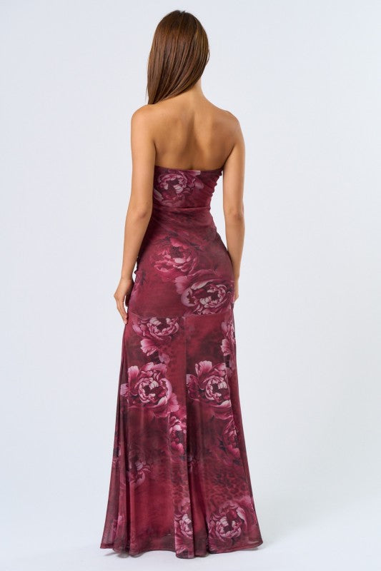 Deep wine colored leopard & floral printed maxi dress.