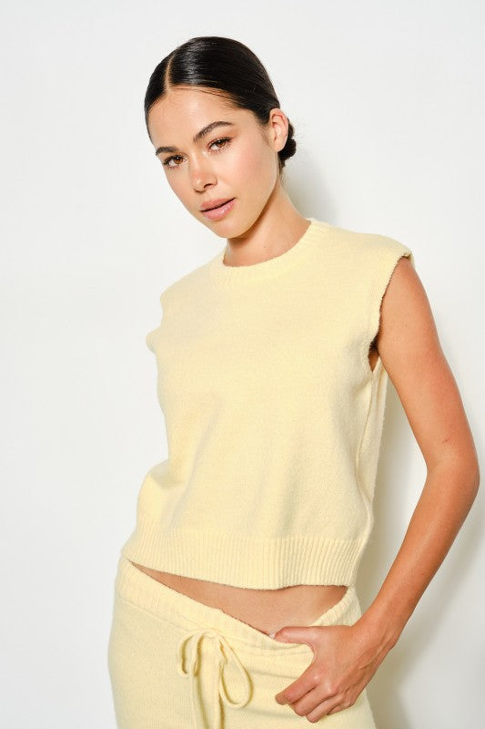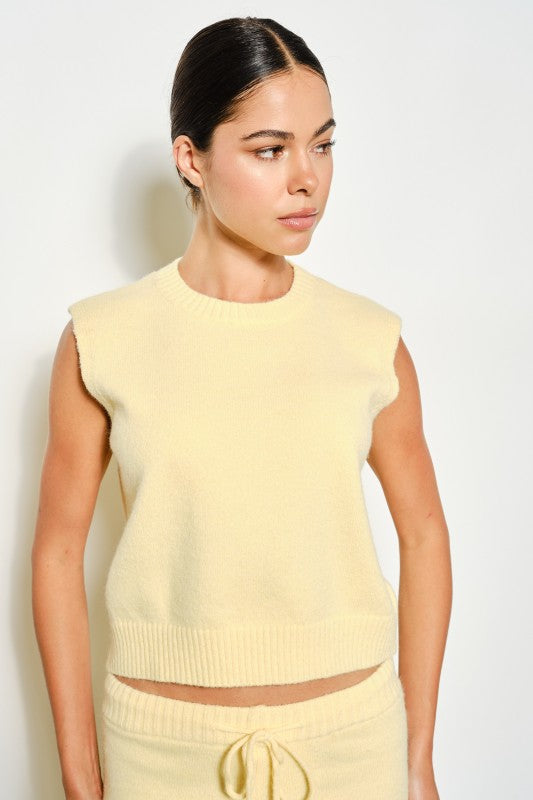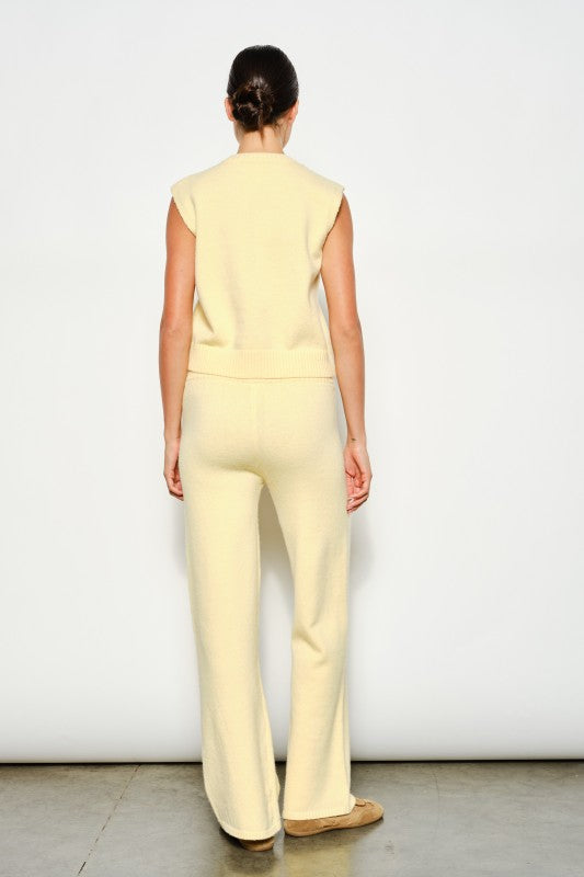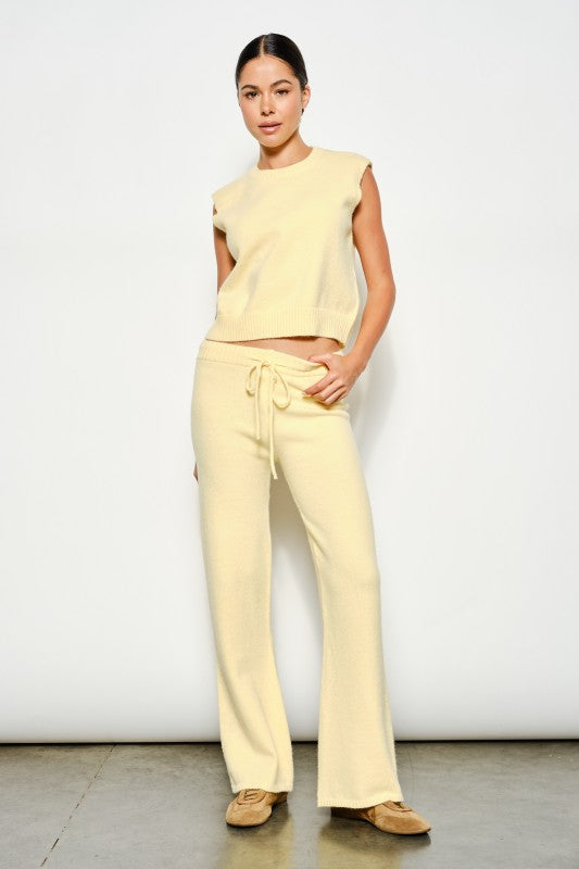 Sunny yellow sweater set with boxy, cozy tank & drawstring wide-leg pants.